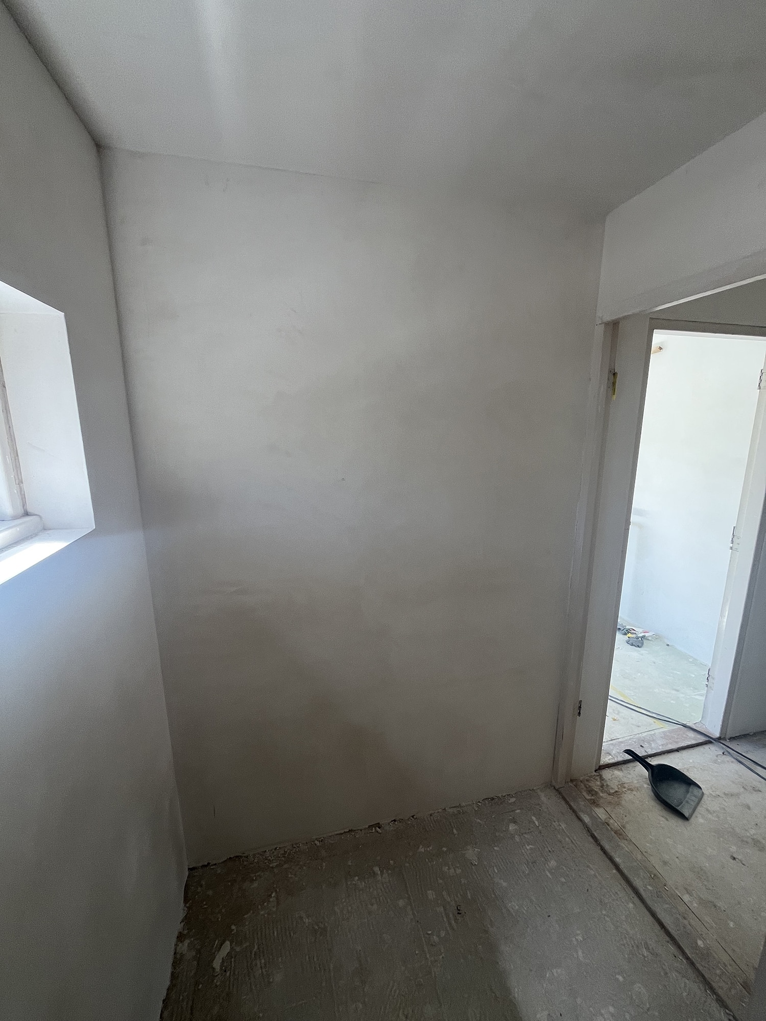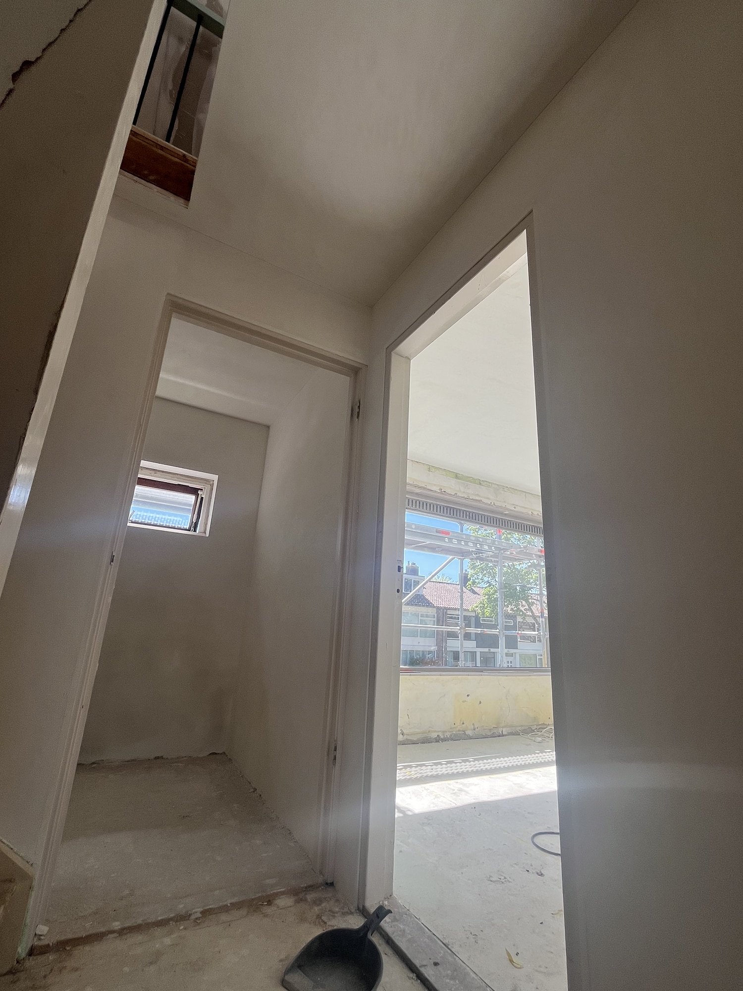 Wij hebben hier de slaapkamers voorzien van nieuw glad pleisterwerk met een laagdikte van ca. 1cm.