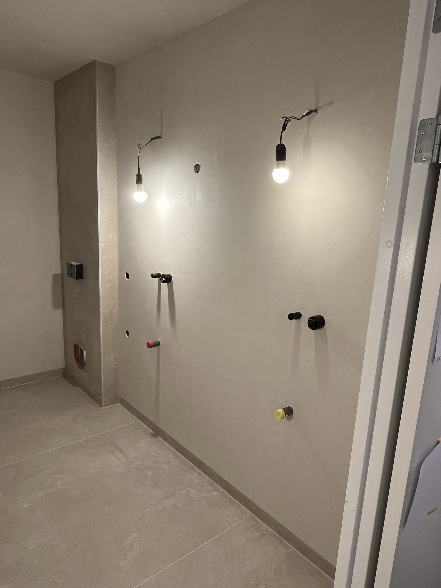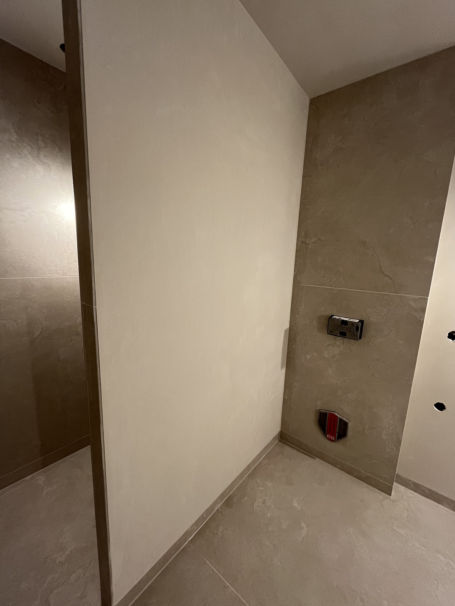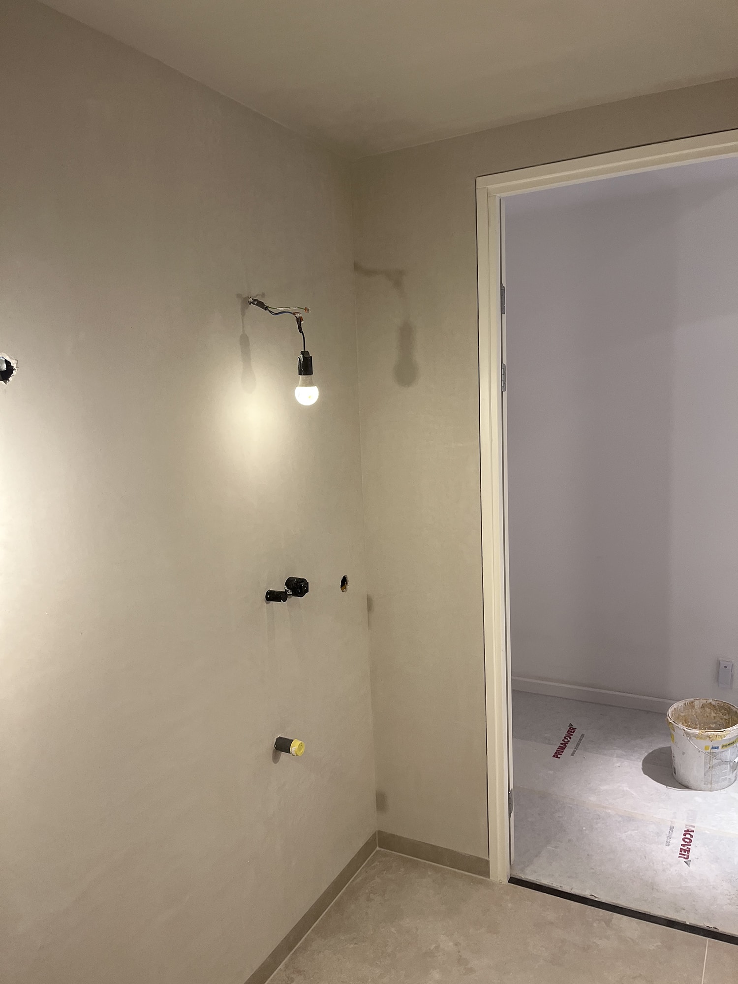 Voor deze particuliere opdracht gever hebben wij de badkamer voorzien van nieuw gladpleisterwerk.