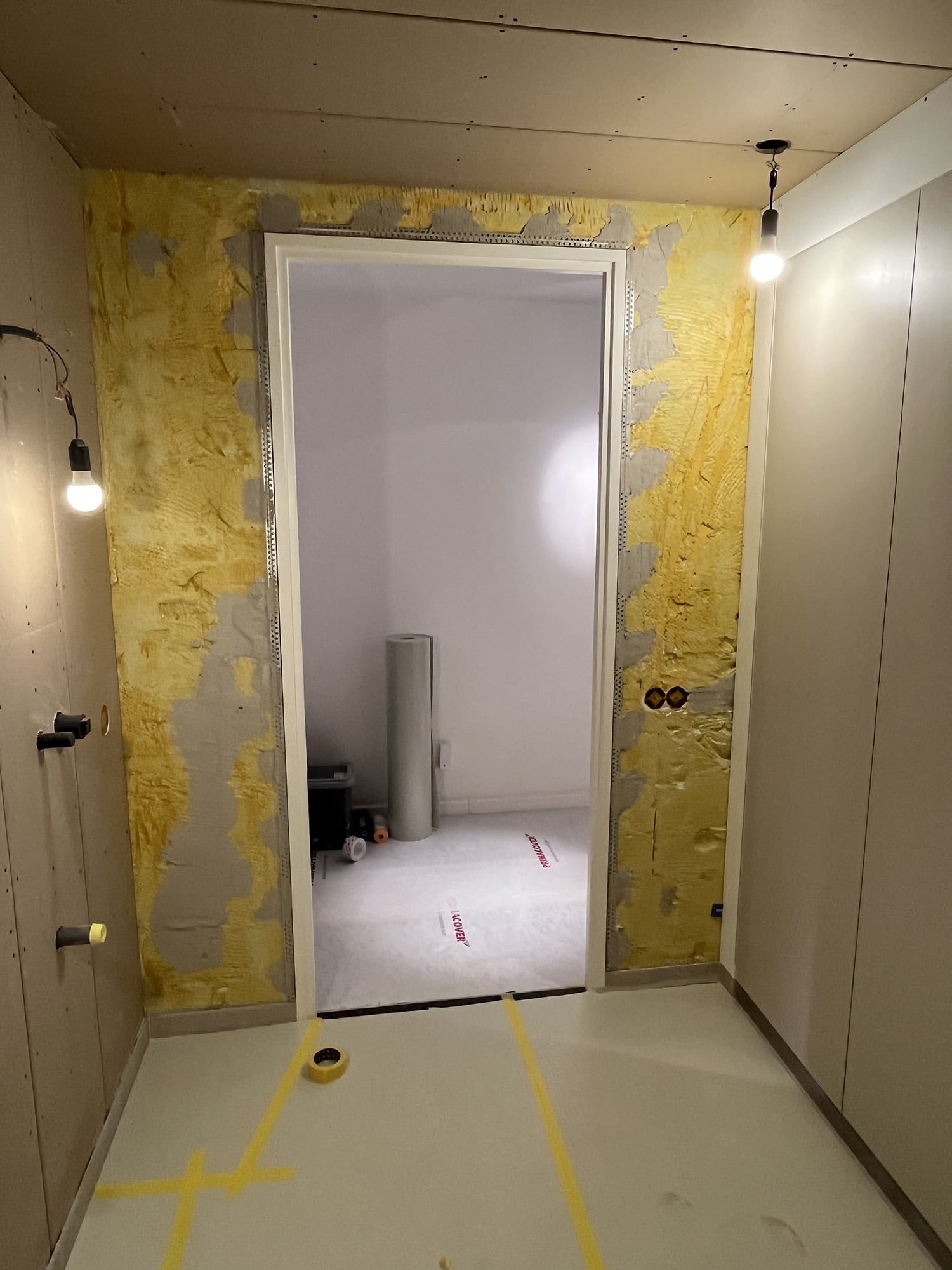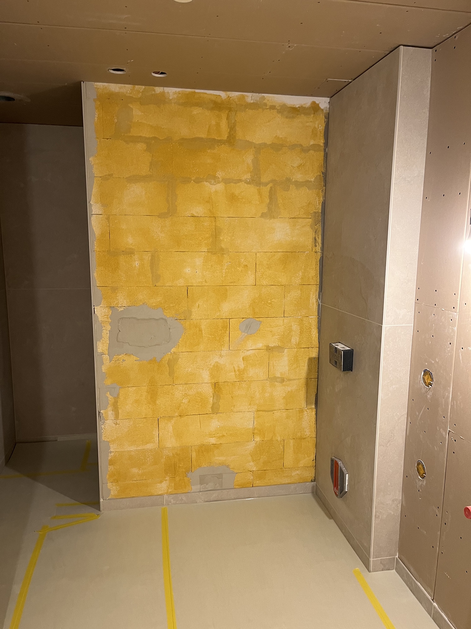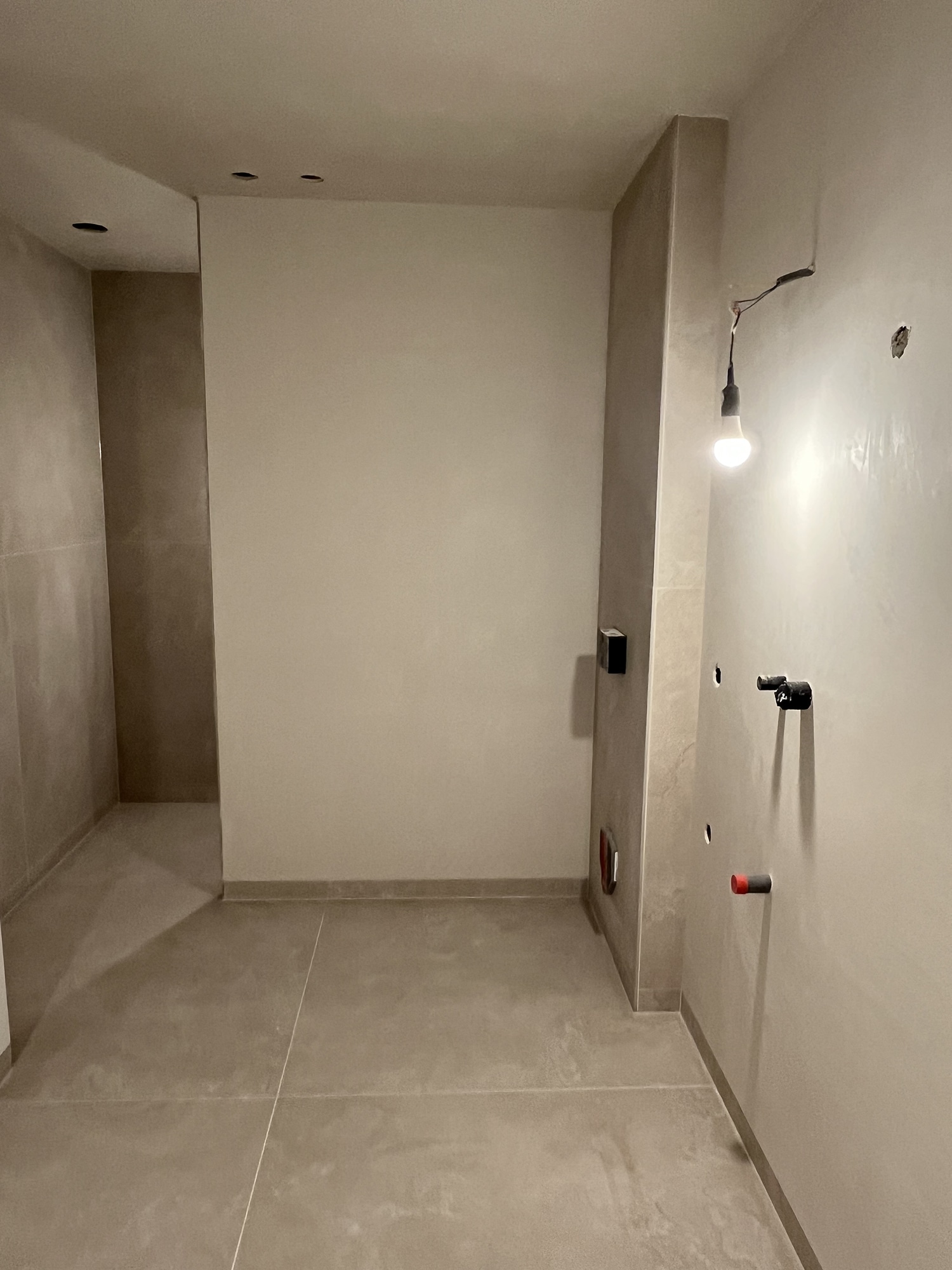 Voor deze particuliere opdracht gever hebben wij de badkamer voorzien van nieuw gladpleisterwerk.