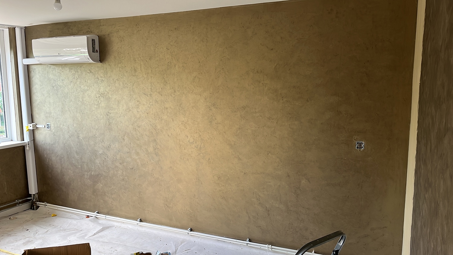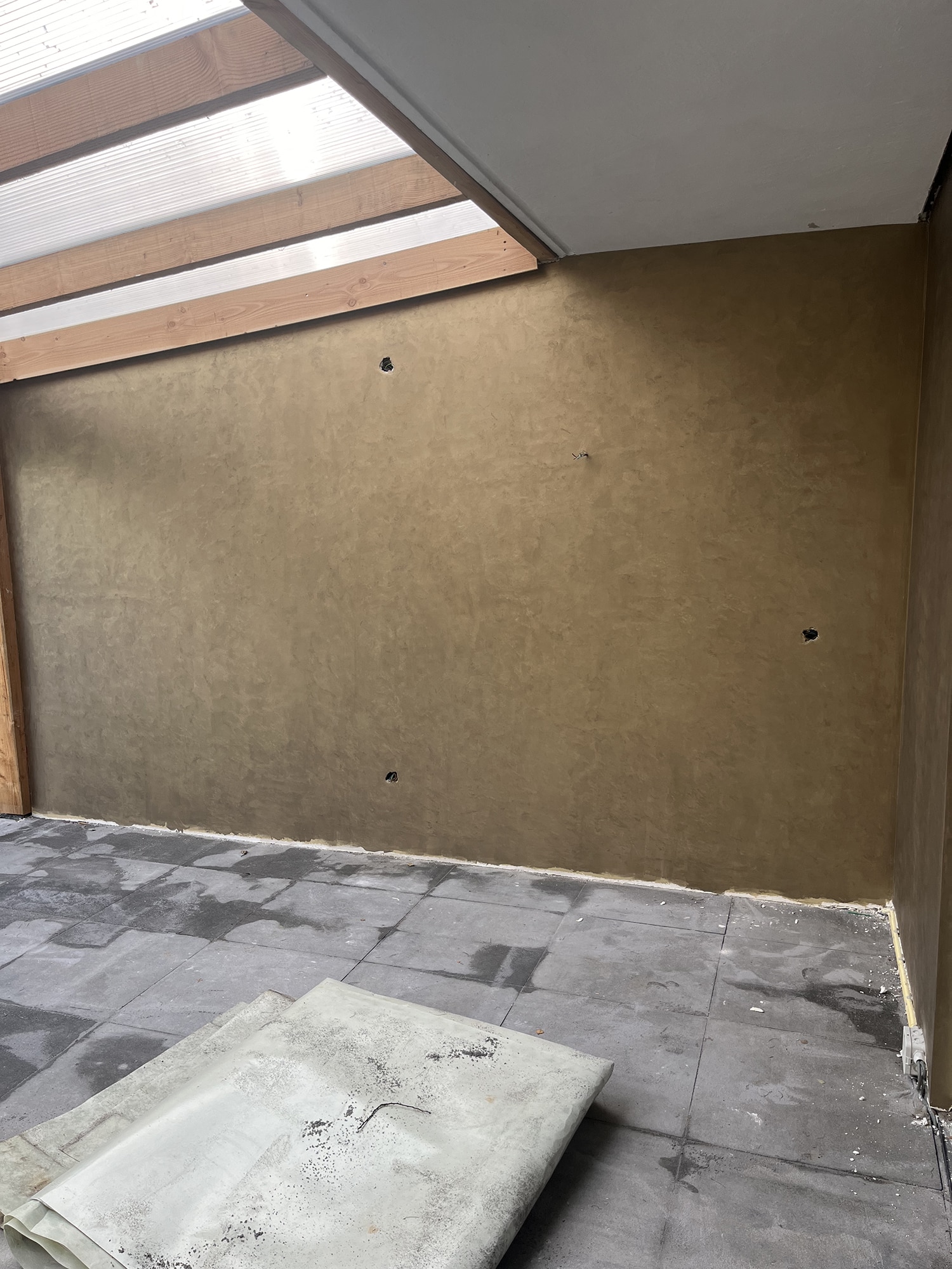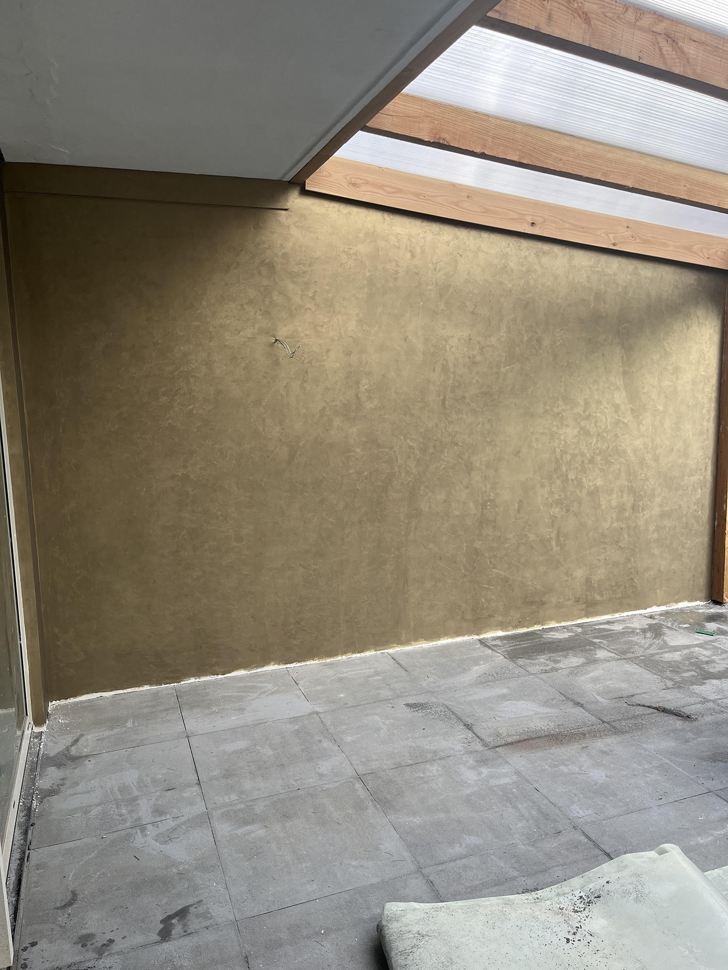 Voor deze particuliere opdrachtgever hebben wij zowel de slaapkamer als de waterdichte overkapping voorzien van designstucwerk. Wij werken met de producten van Novacolor.